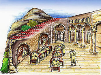 .Copistas en el scriptorium del Monasterio de Suso San Millán de la Cogolla, La Rioja, España Patrimonio de la Humanidad ©